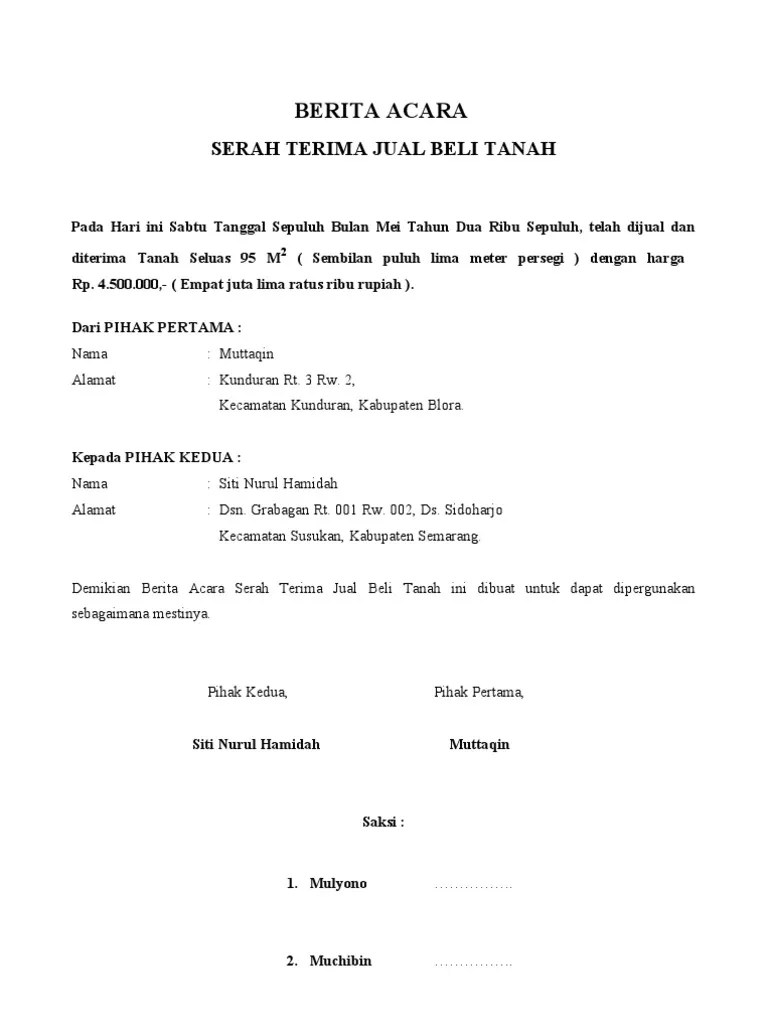 Dalam surat pernyataan jual beli tanah atau akad jual beli tanah ajb anda akan menemukan serangkaian pasal pasal penting. Kamu dapat pergunakan kumpulan berita acara jual beli tanah untuk banyak keperluan anda. Kami yang bertanda tangan di bawah ini: Nah, berikut adalah contoh berita acara serah terima kunci rumah yang bisa kamu jadikan preferensi. Berita acara jual beli tanah merupakan contoh dari berbagai berita acara yang terbaik dan terlengkap.